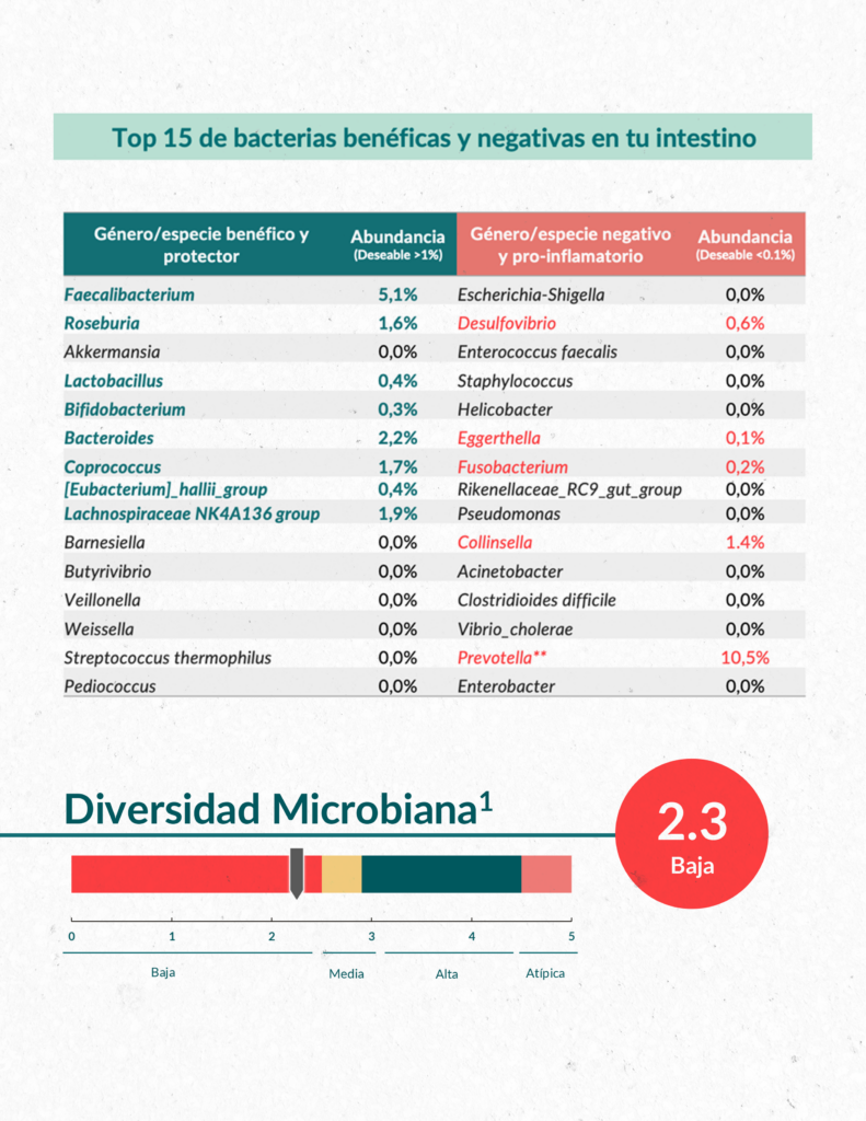 Nuestro análisis de microbioma intestinal te ofrece información personalizada para prevenir enfermedades, mejorar tu nutrición y alcanzar un mayor bienestar